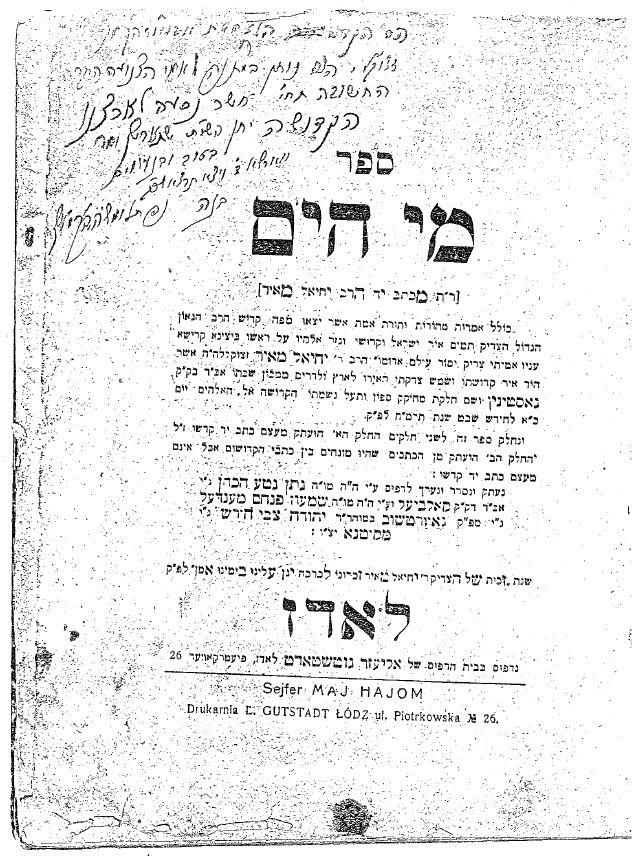 ספר מי הי"ם לאדמו"ר מגוסטינין