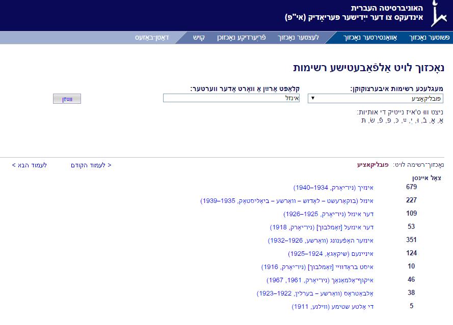כך למדתי כי בדרך כלל לא נטו כתבי עת ספרותיים להאריך חיים ומעל 90% מהם נסגרו בתוך שנה או שנתיים. רק אחוזים בודדים מהם יצאו לאור במשך 3—4 שנים ורק בודדים התפרסמו מעבר לחמש שנים. המקור השני היה פרויקט מפתח עיתונות יידיש המאפשר בדיקת מספר המאמרים שנרשמו מכל אחד מכאלף עיתוני יידיש ובהם גם מאות עיתונים ספרותיים. כאן הסתבר כי מתוך העיתונים המובילים מצאו עורכי המפתח מאות ואף אלפי מאמרים שהיו ראויים לקטלוג. בעוד מן העיתונים הפחות נפוצים קוטלגו רק עשרות בודדות של מאמרים.