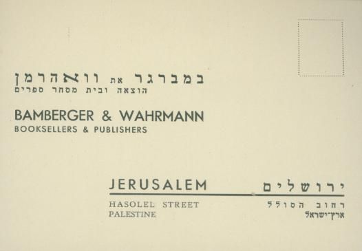 וואהרמן, מסתבר, לא התלבט זמן רב מדי, ואולי היו אלו גם המאורעות הפוליטיים בגרמניה שעודדוהו לעלות ארצה כבר כמעט מיד לאחר מכן. בדצמבר באותה השנה ייסד יחד עם ידידו במברגר את חנות הספרים הירושלמית "במברגר את וואהרמן", שהפכה עד מהרה לאגדה ירושלמית מציאותית לחלוטין.