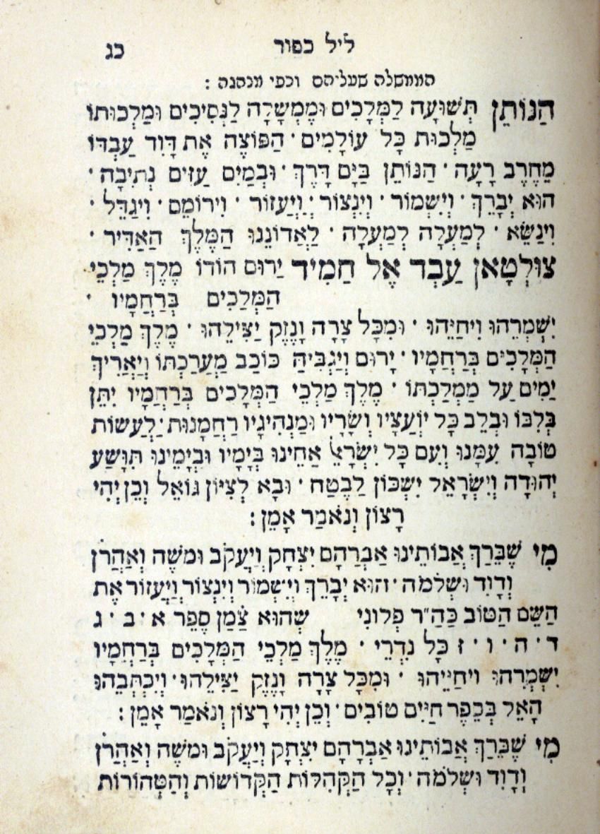 מחזור ליום הכפורים. בגדד תרנ"א 1891. (מאוספי ספריית הרמב"ם. בית אריאלה)