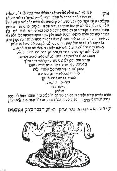 כשהציור מופיע בקולופון. עשר שנים אחר-כך, בשמ"ז [1587], ניתן למצאו גם בקולופון של זמירות ישראל של ישראל בן משה נג'ארה .