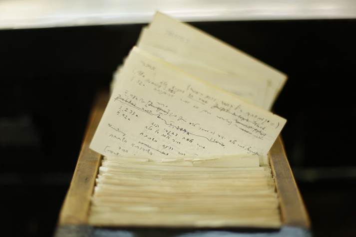 לפני קצת יותר משנה העלנו לאתר הספרייה כ7,000 (!) כרטיסים שעליהם כתב שלום במשך שנים רבות מילון זוהרי. http://web.nli.org.il/sites/NLI/Hebrew/collections/jewish-collection/scholem/scholem-card-catalog/Pages/default.aspx