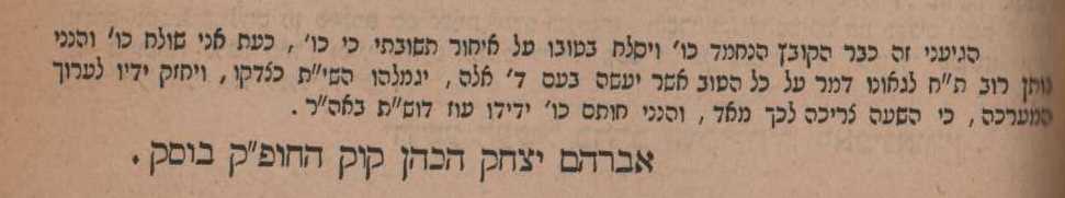 אחר זמן מצאתי באחת הביבליוגרפיות של כתבי הראי"ה שורה זו: