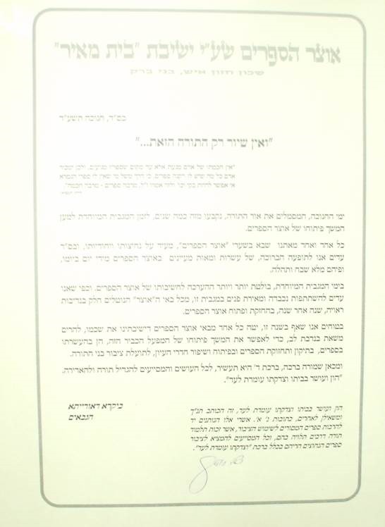 אוצר הספרים של ישיבת בית מאיר בבני ברק