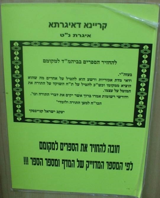 [2] את אפיונה זה של החרדיות תיארתי כבר במקום אחר, ראה: "ספריות במגזר החרדי". עלון ספרני היהדות, גל' טו.