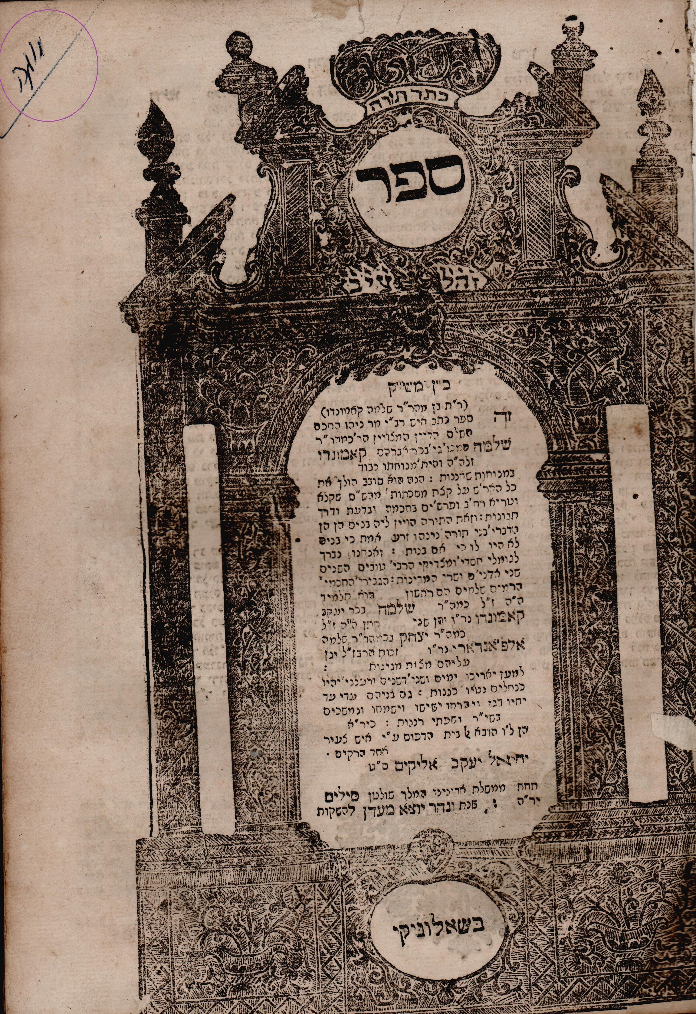 קמונדו, שלמה. בן מש"ק. שלוניקי. תקס"ב 1802