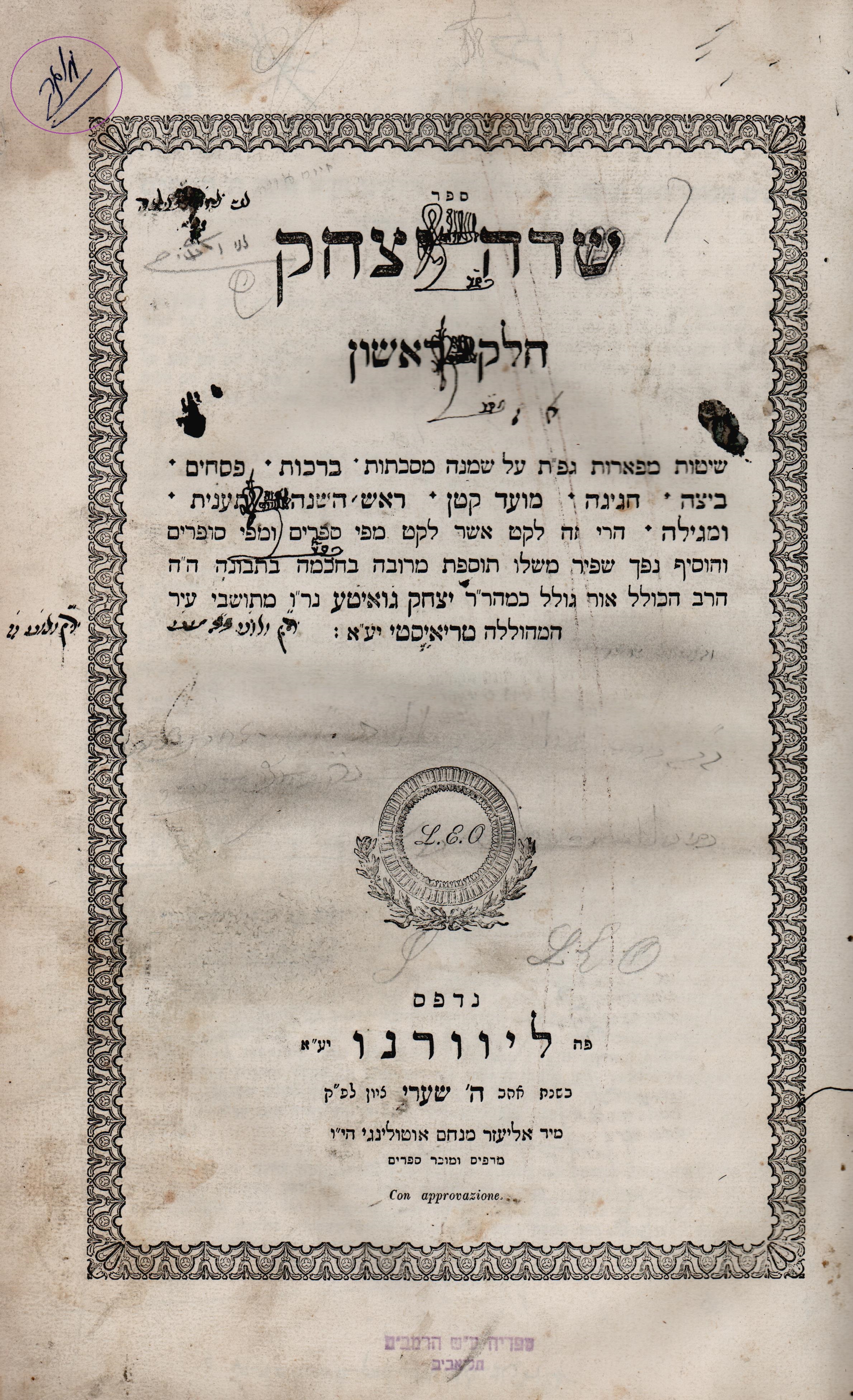 גואטה יצחק, שדה יצחק. ליוורנו, תר"ו 1846