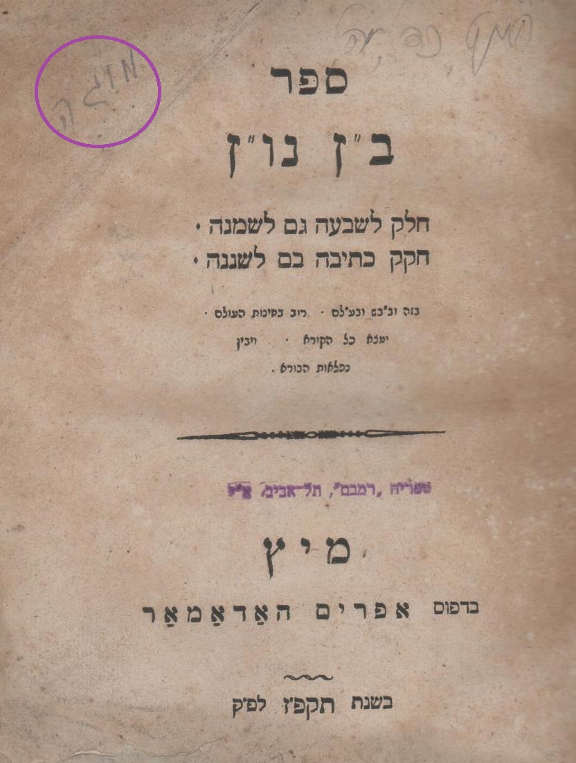 — בשלשה ספרים נמצאו חותמות מודפסות ולא חתימות בכתב יד. פשוט הוא שבחותמות אלו הודפסו ספרים רבים ואולי כל המהדורה הנדפסת.