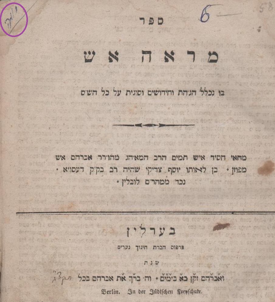 אש, אברהם. מראה אש. ברלין. תקצ"ג 1833