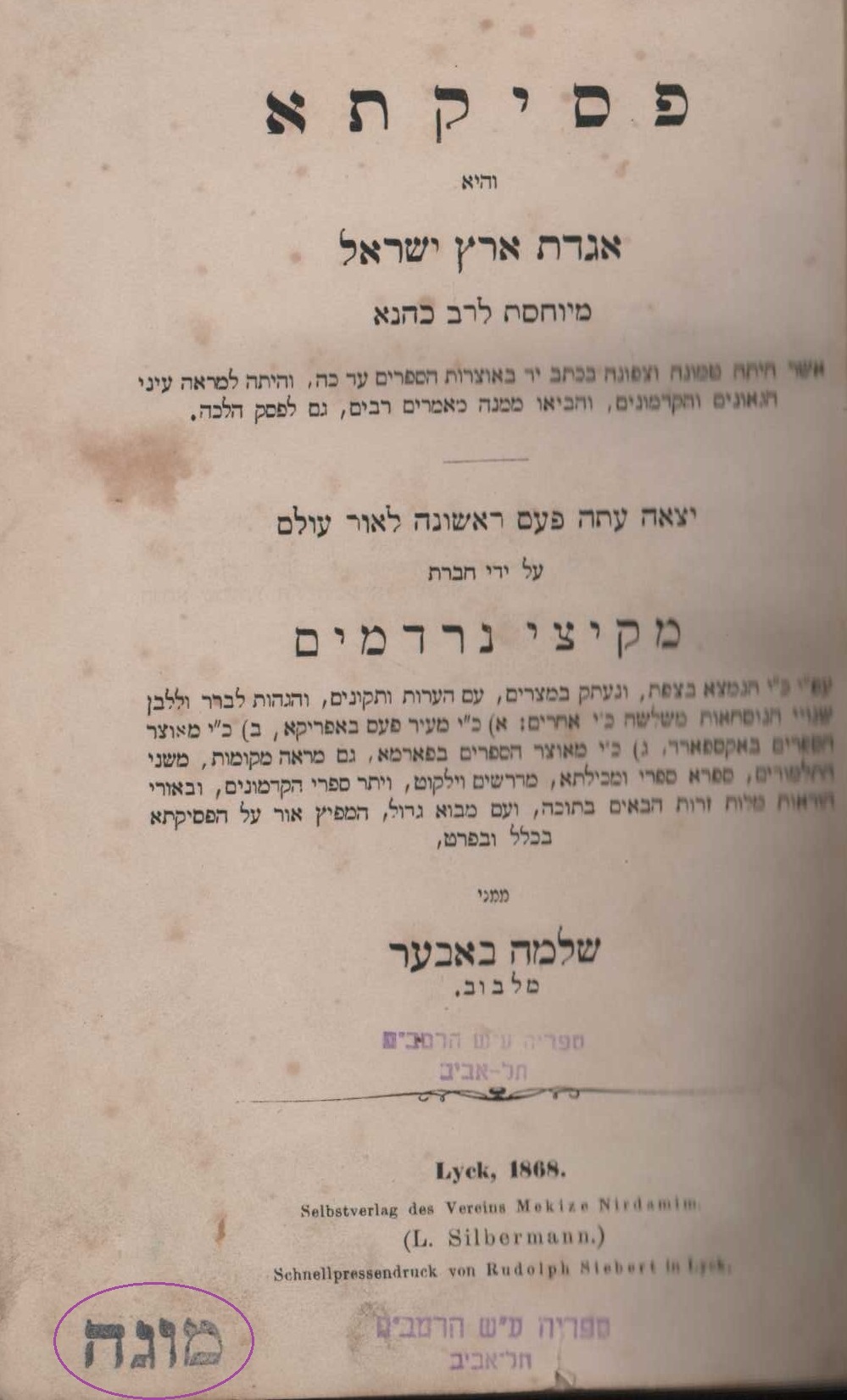 פסיקתא דרב כהנא (מהדורת בובר). ליק. תרכ"ח 1868
