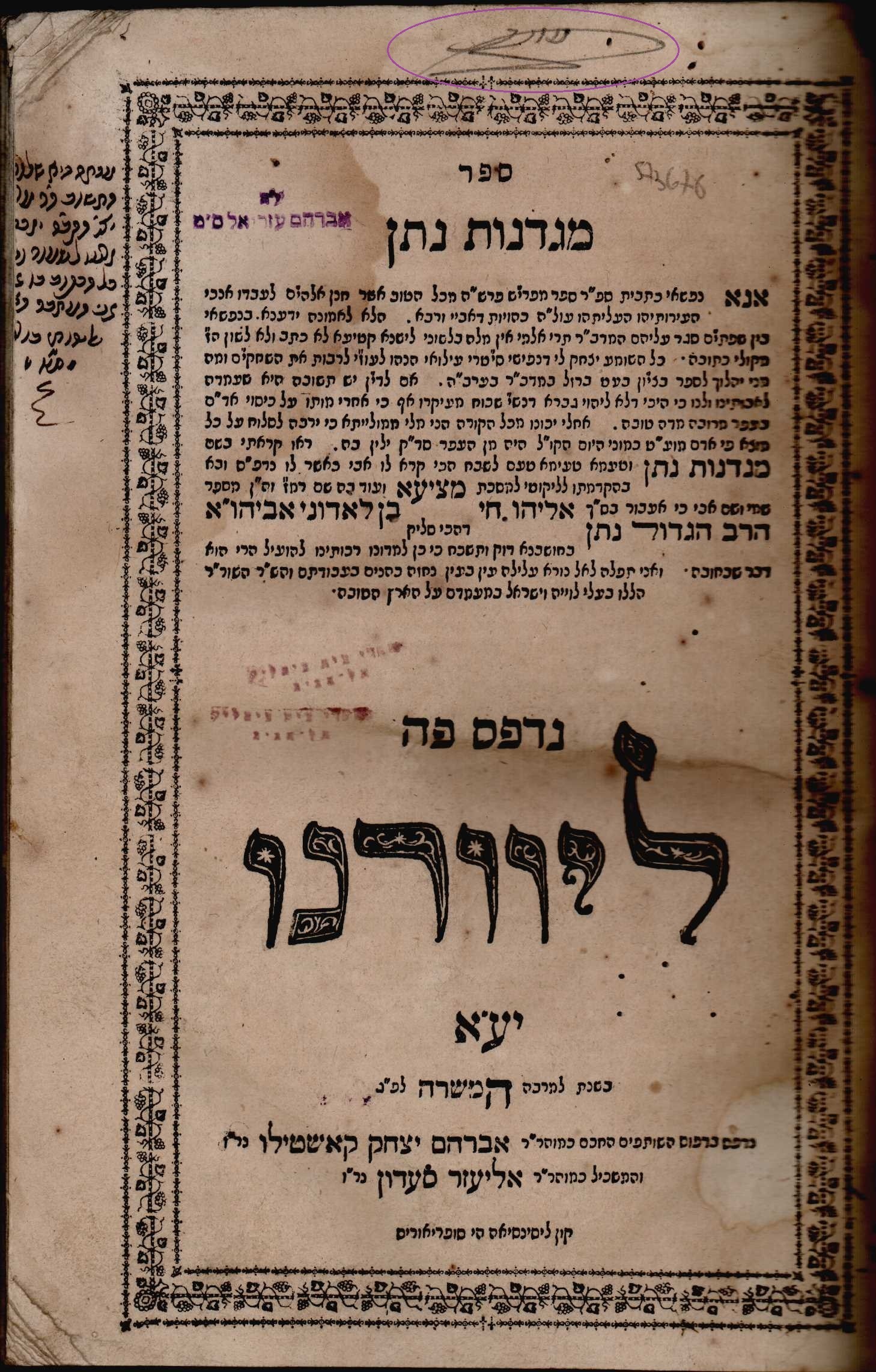 בורג'ל,אליהו חי. מגדנות נתן. ליוורנו. תקמ"ה 1785