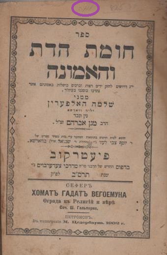 הלפרין, שלמה. חומת הדת והאמונה. פיוטרקוב. תרס"ב 1902